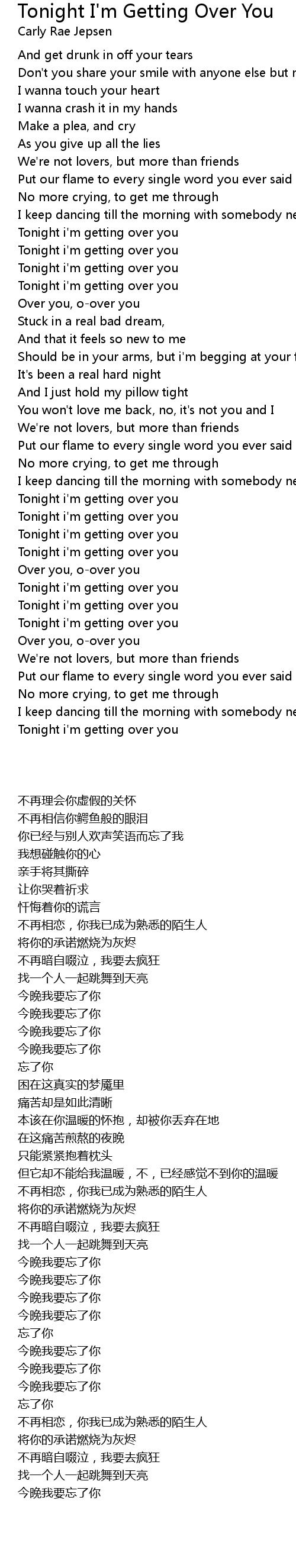 Tonight i'm getting over you |