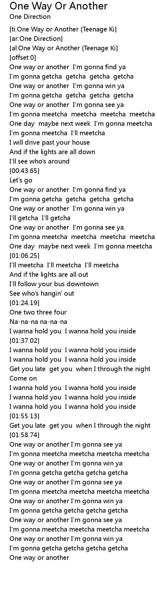 [ti:One Way or Another (Teenage Ki] |