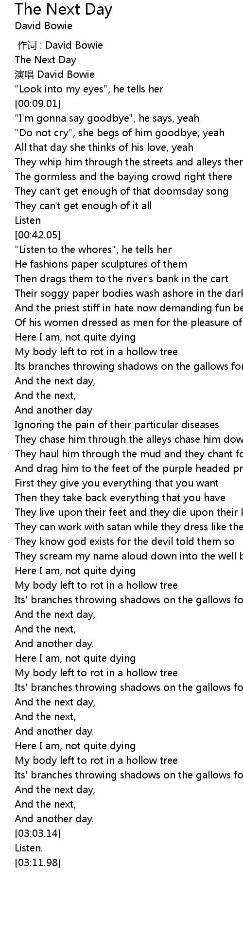 | [01:42.90] | They haul him through the mud and they chant for his death |