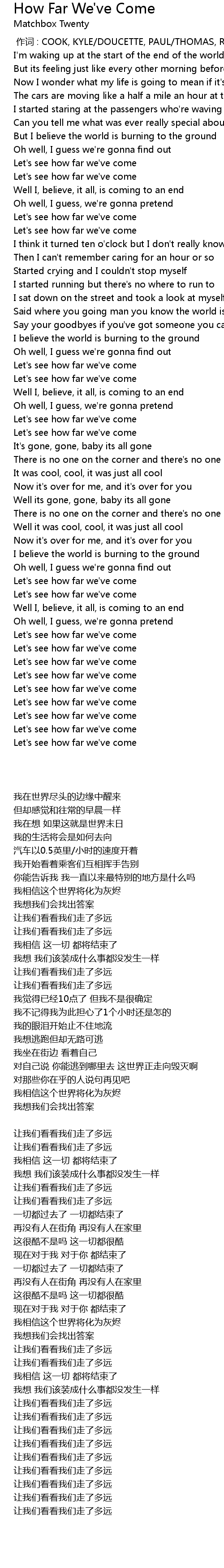 | [00:26.500] | I'm waking up at the start of the end of the world |