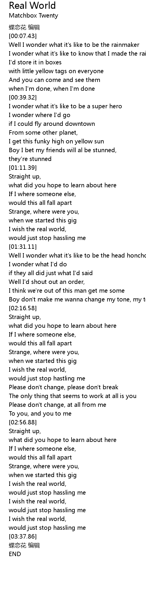 | [00:09.43] | Well I wonder what it' s like to be the rainmaker |