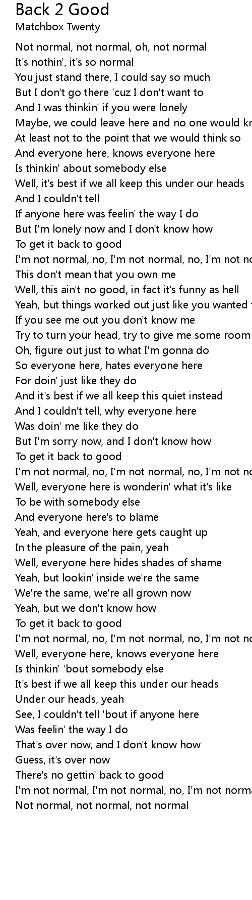 I'm not normal, no, I'm not normal, no, I'm not normal