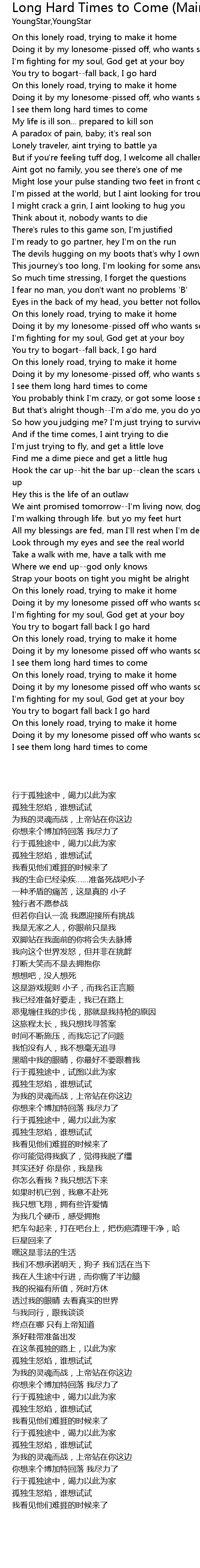 | [00:10.01] | I'm fighting for my soul, God get at your boy |