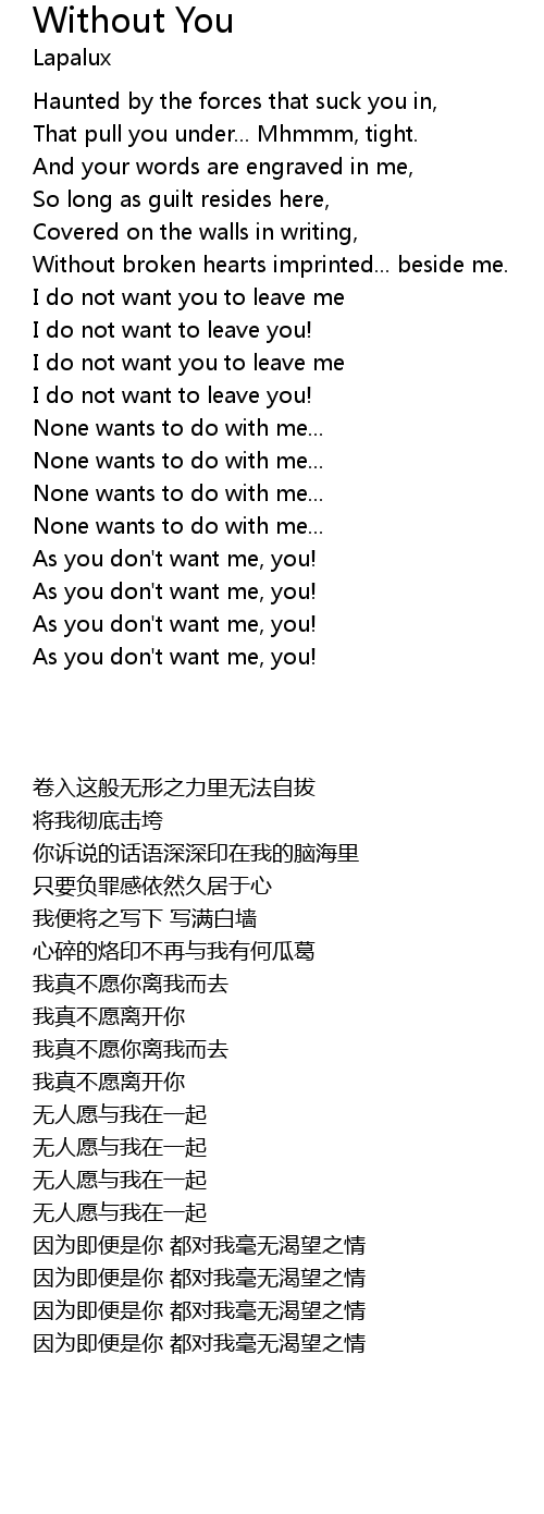 I do not want to leave you! |