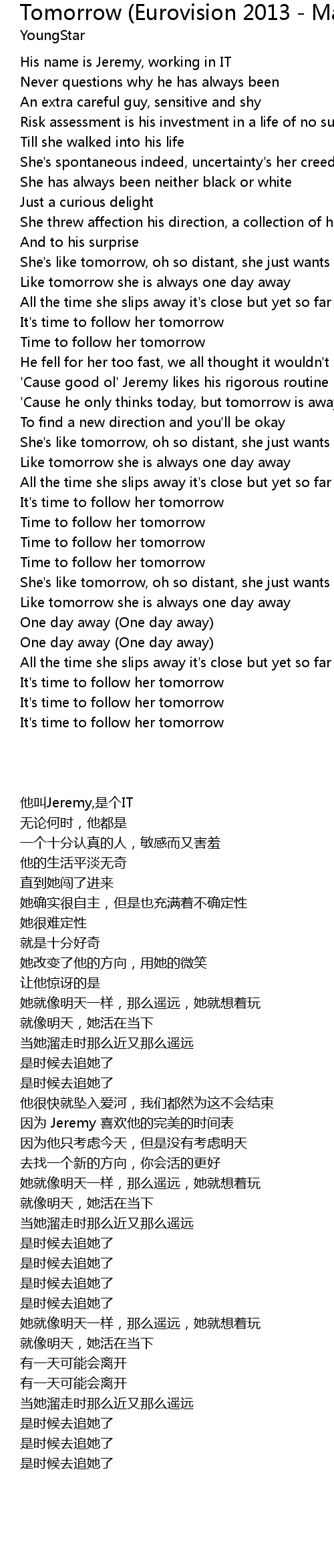 Like tomorrow she is always one day away |