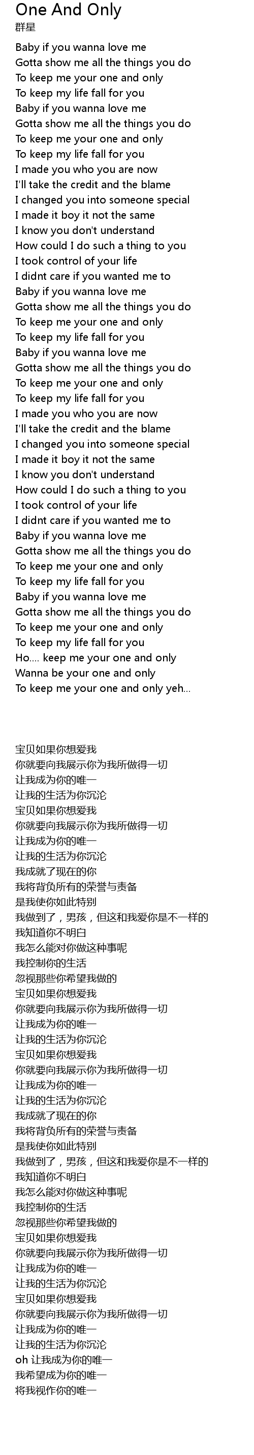 | [01:19.030] | To keep me your one and only |