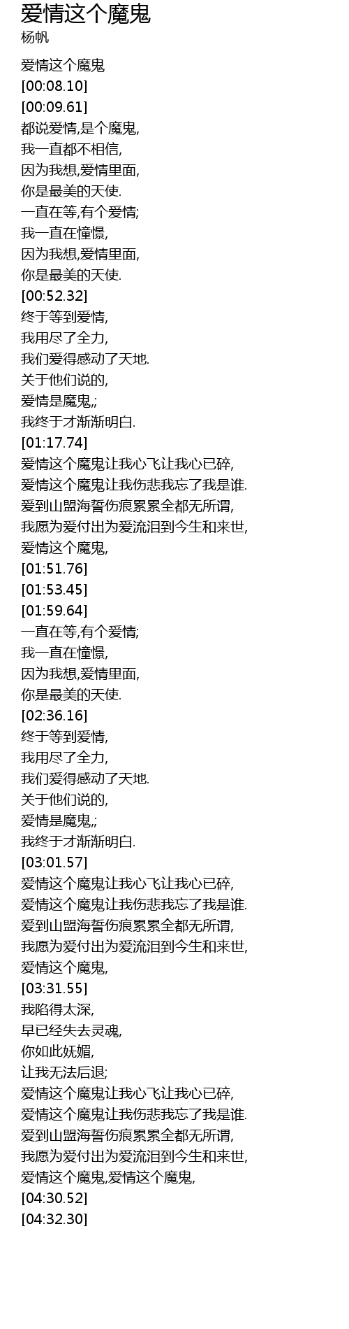 | [04:14.11] | 爱情这个魔鬼,爱情这个魔鬼, |