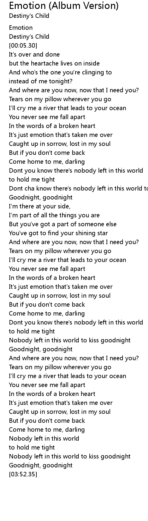 Dont cha know there's nobody left in this world to kiss goodnight |