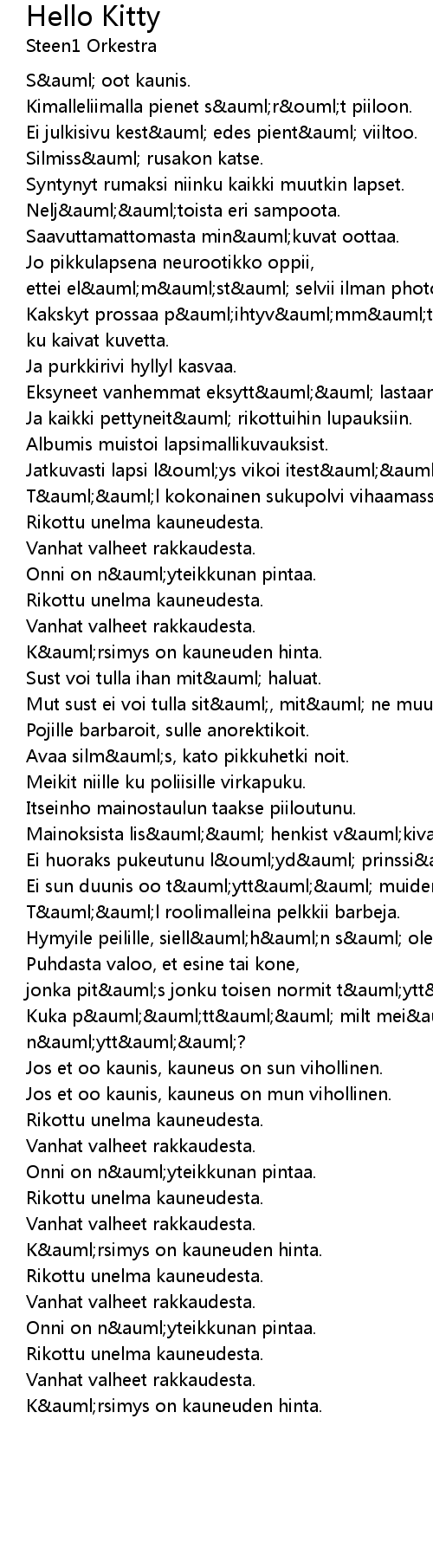 Hello Kitty Lyrics
