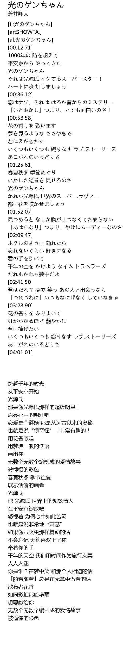 | [01:37.54] | 光のゲンちゃん |