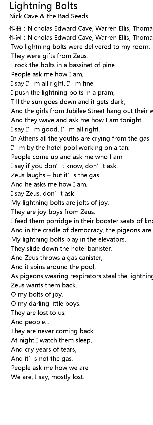 | [00:40.785] | I push the lightning bolts in a pram, |