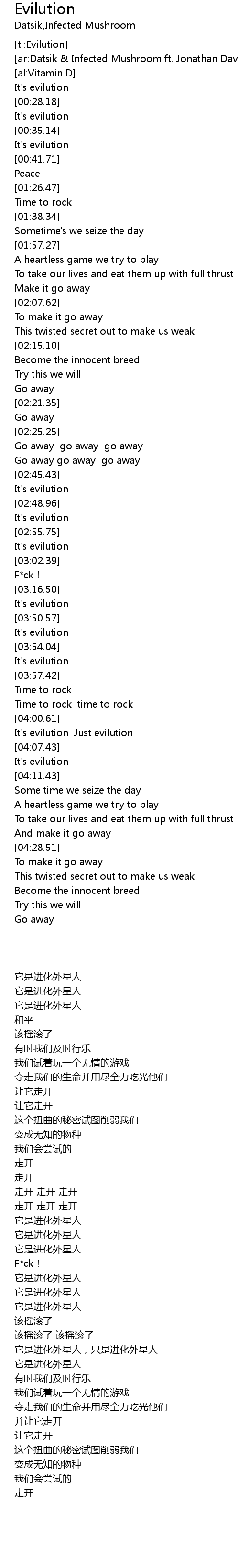 | [03:00.16] | It's evilution |