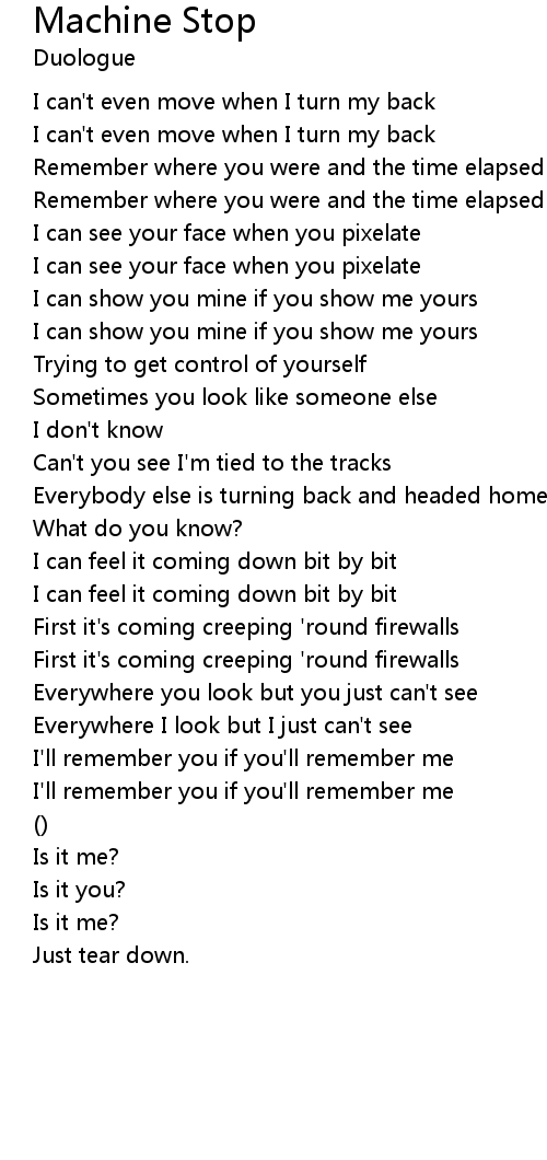 Machine Stop Lyrics