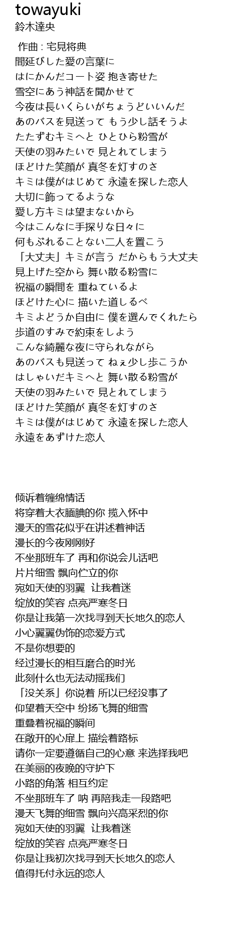 | [02:39.560] | 見上げた空から 舞い散る粉雪に |