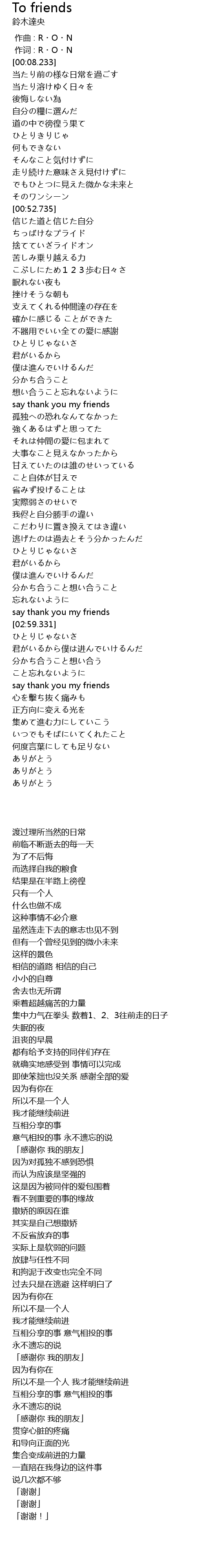| [03:43.234] | 君がいるから僕は进んでいけるんだ |