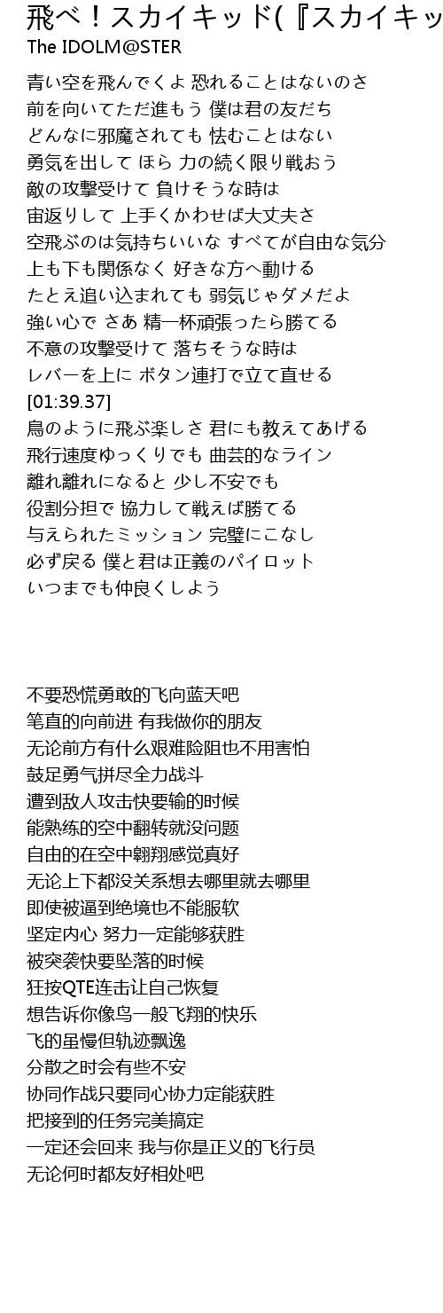 | [03:04.42] | 必ず戻る 僕と君は正義のパイロット |