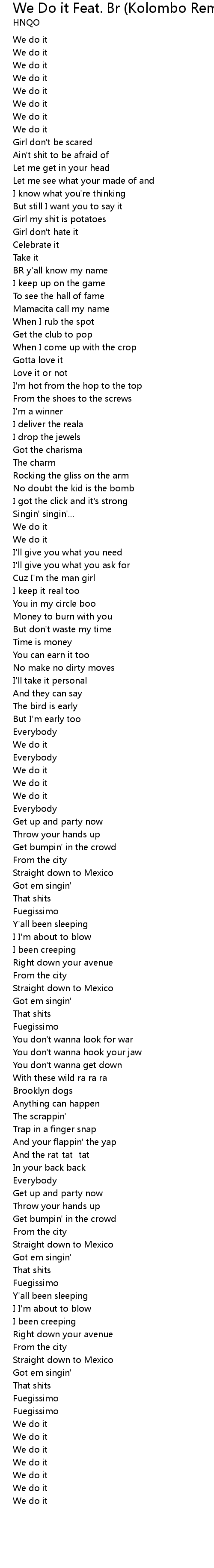 | Song | We Do it Feat. Br (Kolombo Remix) |