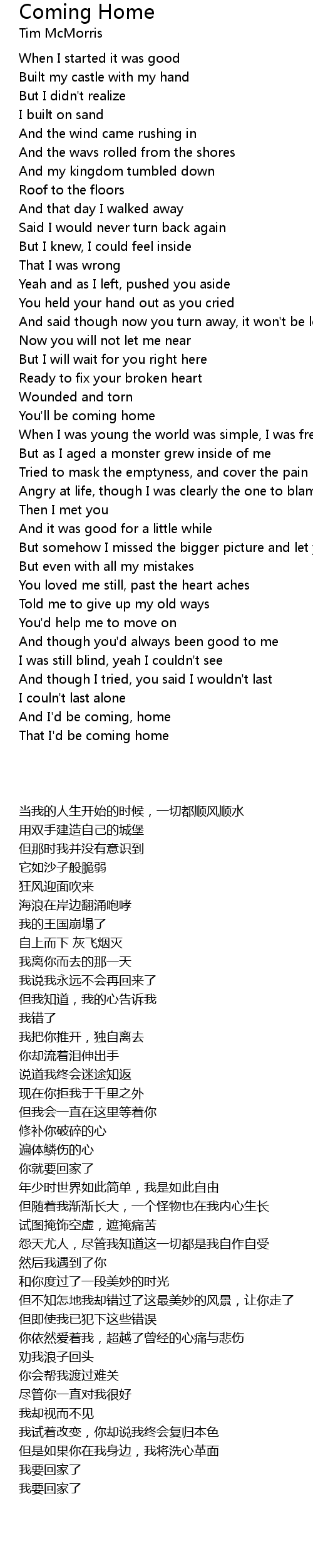 That I'd be coming home |