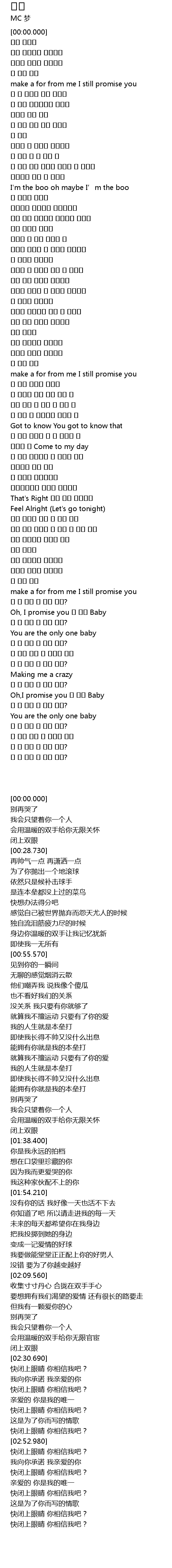 | [01:38.400] | make a for from me I still promise you |