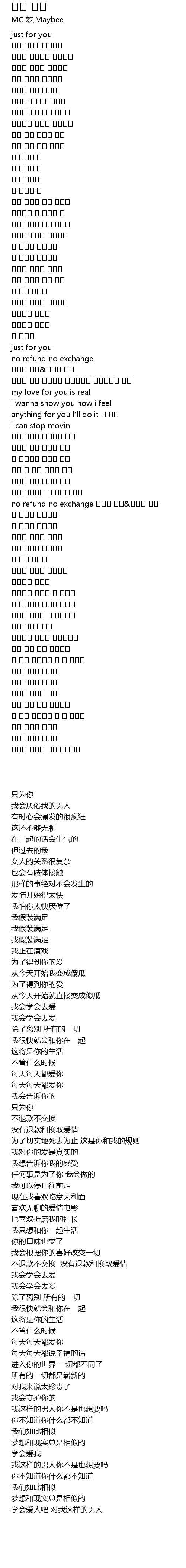 | [02:03.261] | no refund no exchange 사랑에 환불&교환은 금지 |
