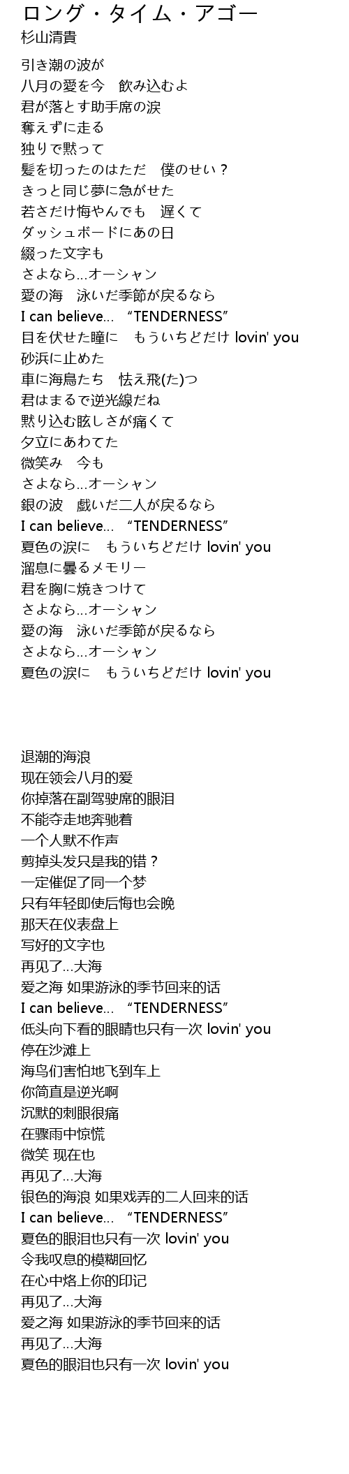 | [04:16.535] | 夏色の涙に もういちどだけ lovin' you |