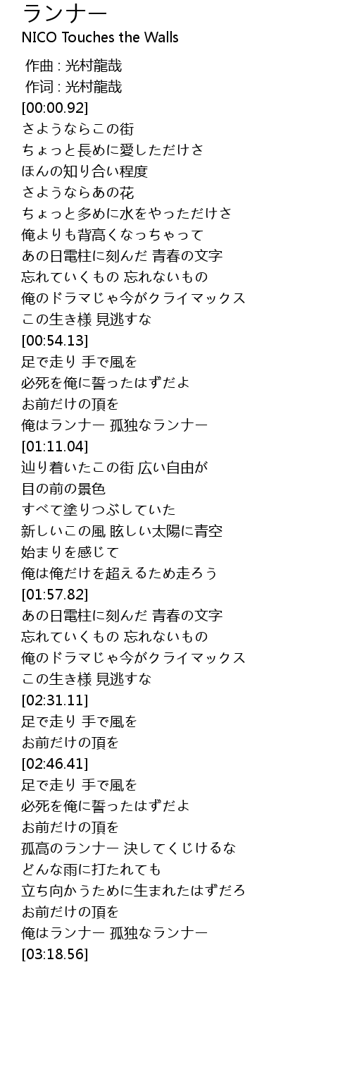 | [03:14.95] | 俺はランナー 孤独なランナー |
