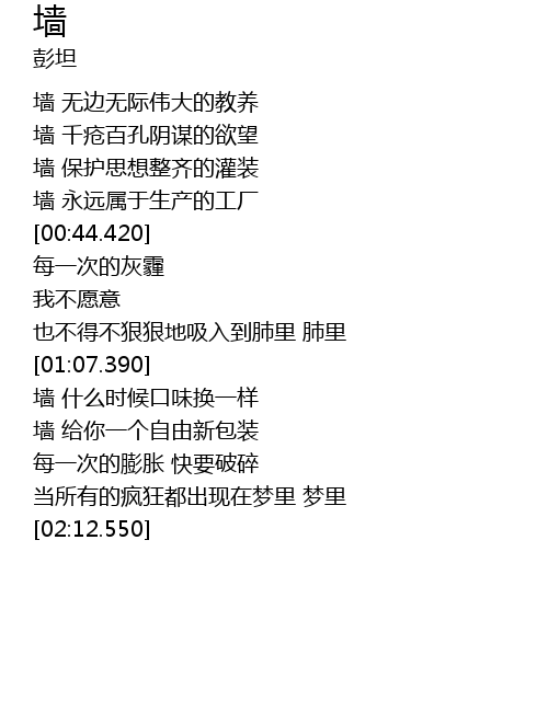 | [00:11.360] | 墙 无边无际伟大的教养 |