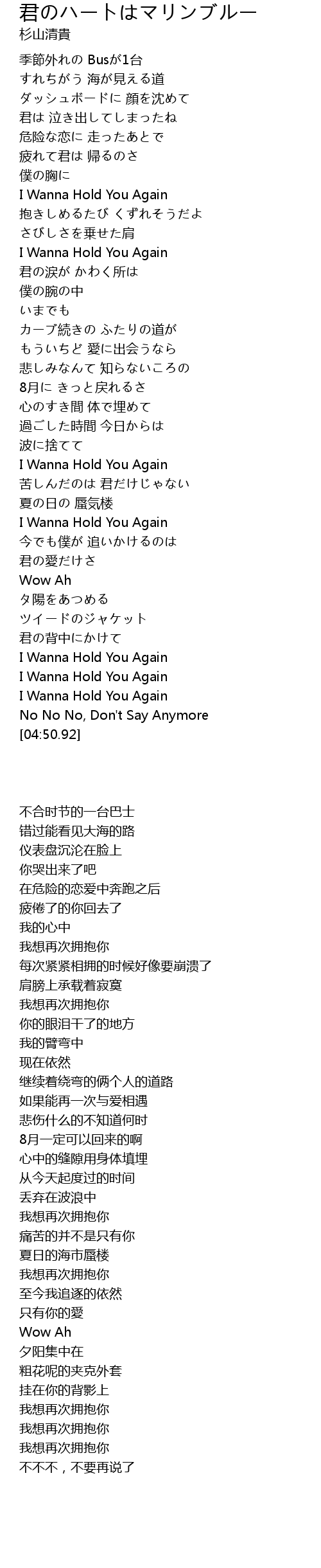 | [03:00.46] | I Wanna Hold You Again |