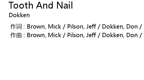 | [00:00.000] | 作曲 : Brown, Mick / Pilson, Jeff / Dokken, Don / Lynch, George |