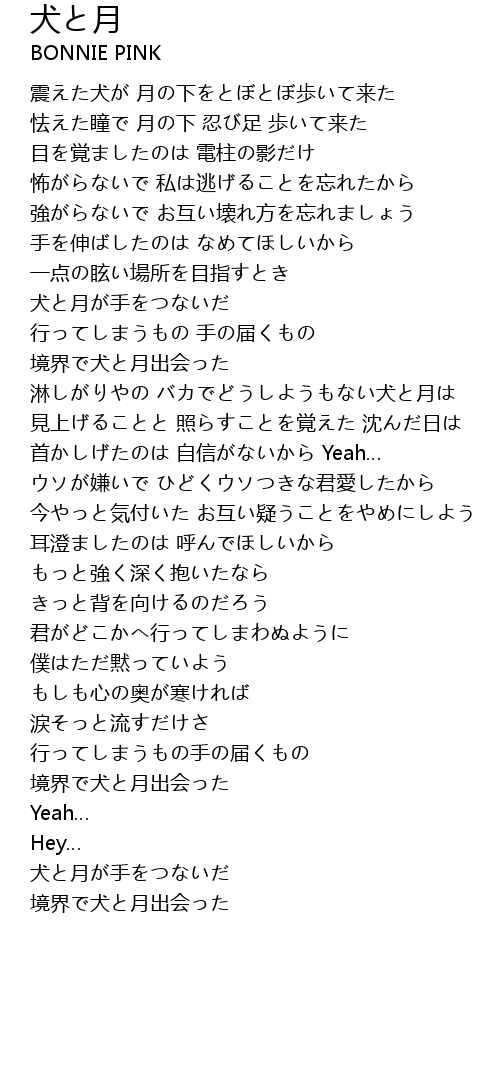 | 怯えた瞳で 月の下 忍び足 歩いて来た | |