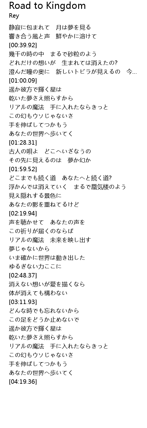 | [02:00.37] | どこまでも続く道 あなたへと続く道? |