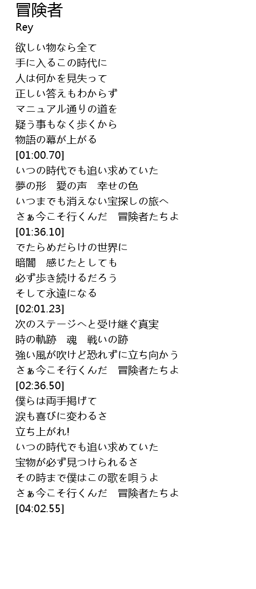 | [03:49.92] | さぁ今こそ行くんだ 冒険者たちよ |