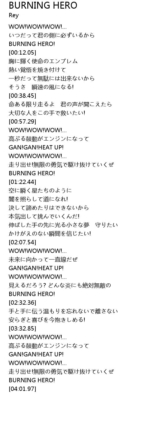 | [03:48.76] | 走り出せ!無限の勇気で駆け抜けていくぜ |