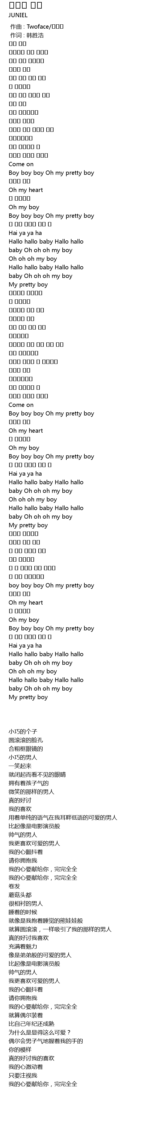 | [02:14.860] | Boy boy boy Oh my pretty boy |