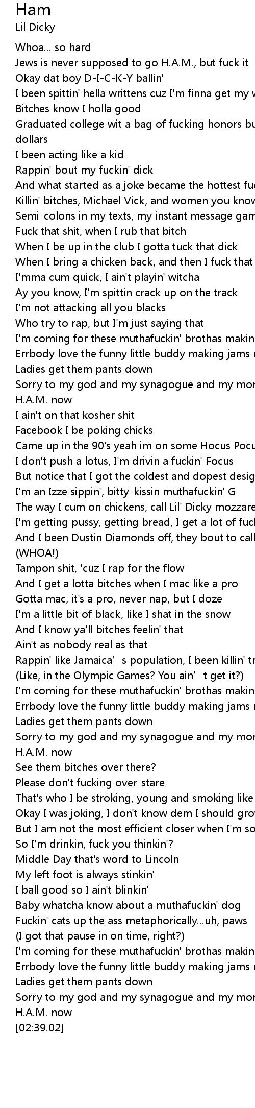 | [00:07.70] | Jews is never supposed to go H.A.M., but fuck it |