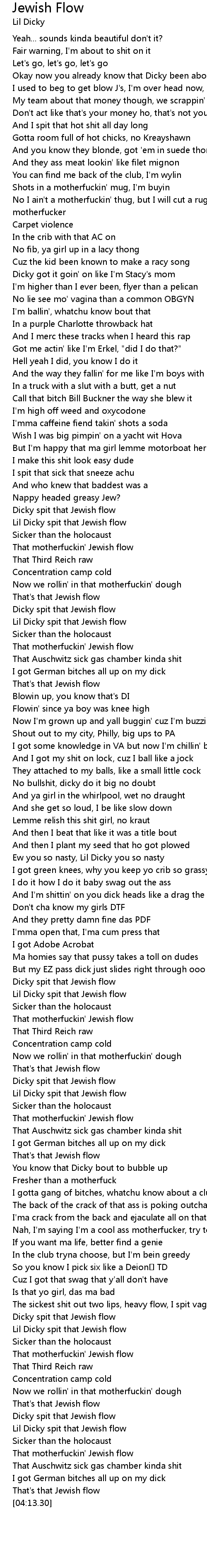 | [02:58.84] | Dicky spit that Jewish flow |