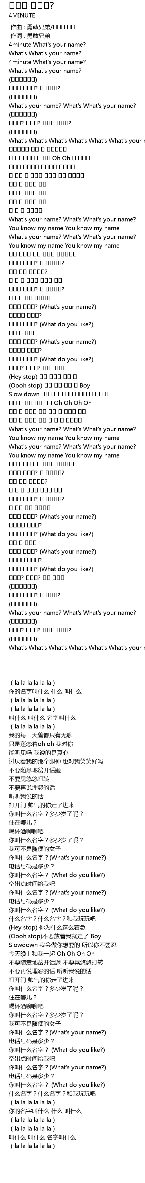 | [00:07.660] | 4minute What's your name? |