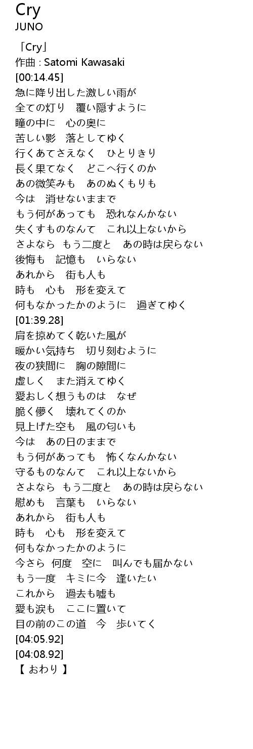 | [00:07.45] | zuo qu Satomi Kawasaki |