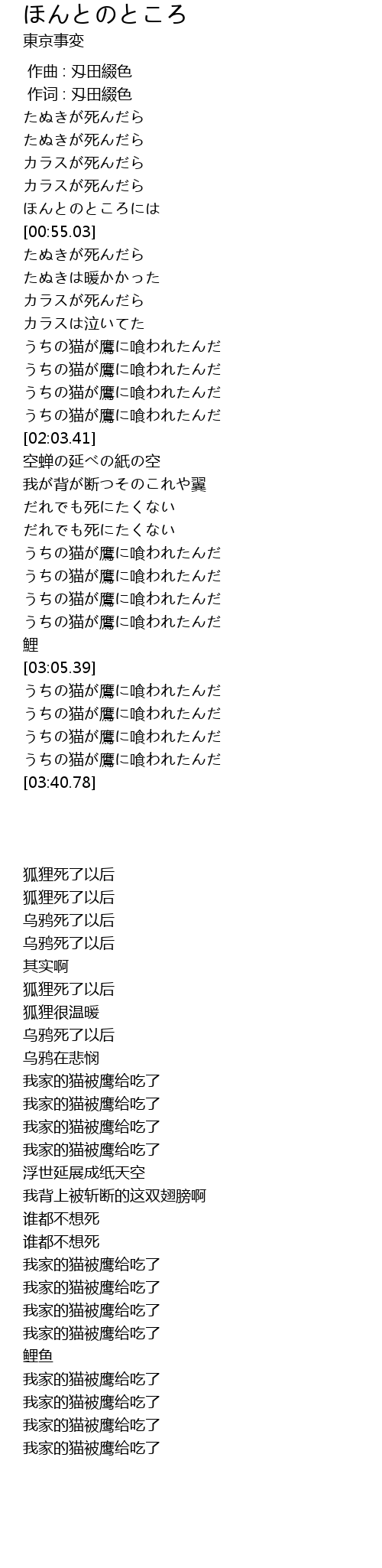 | [03:11.42] | うちの猫が鷹に喰われたんだ |