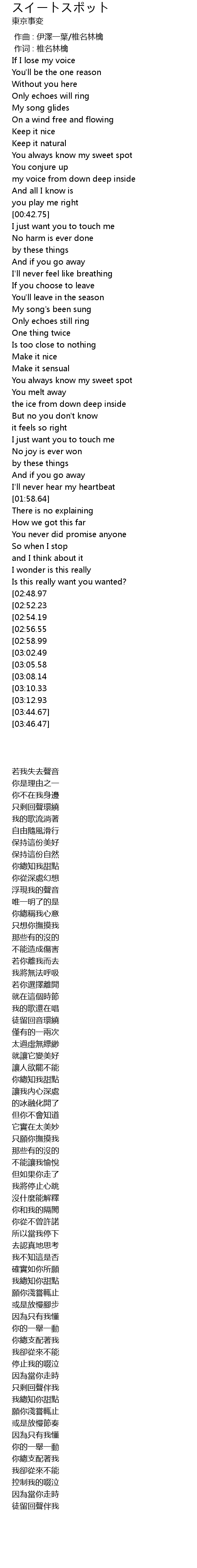 | [03:16.37][02:48.97] | I always know your sweet spot |