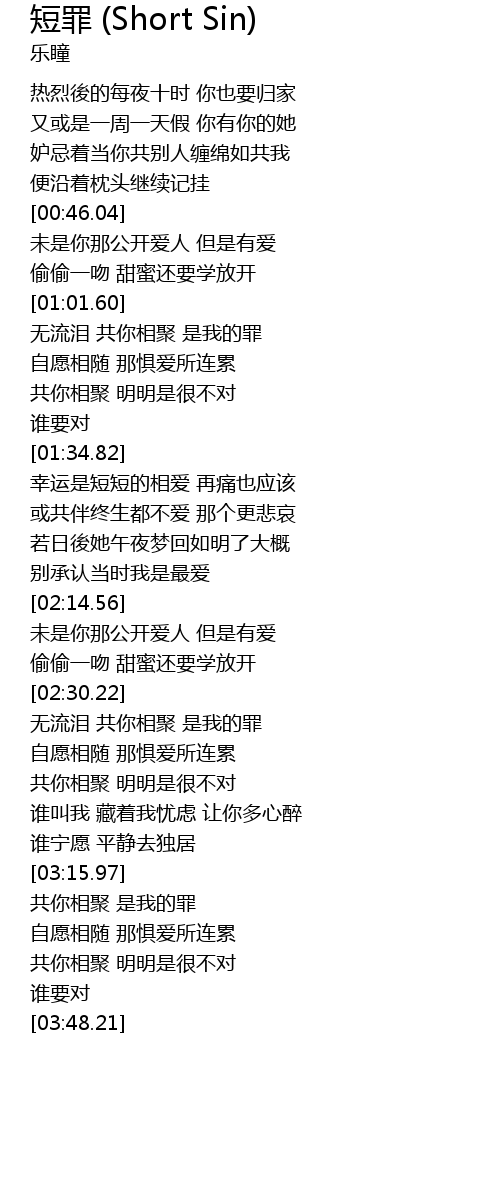 | [03:16.68] | 共你相聚 是我的罪 |