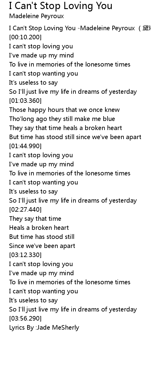 | [00:20.70] | I can't stop loving you |