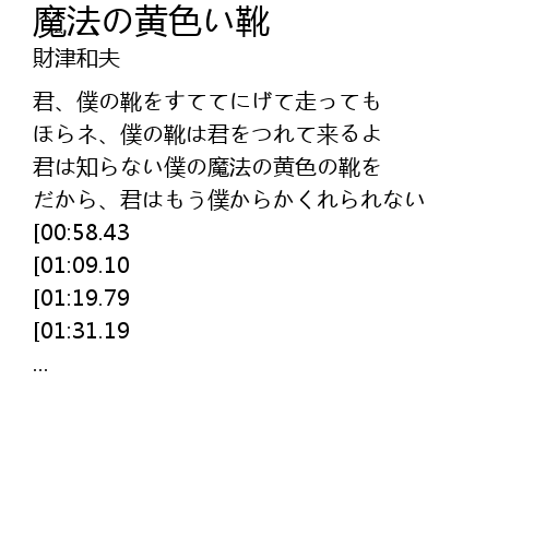 | [00:36.22] | 君は知らない僕の魔法の黄色の靴を |