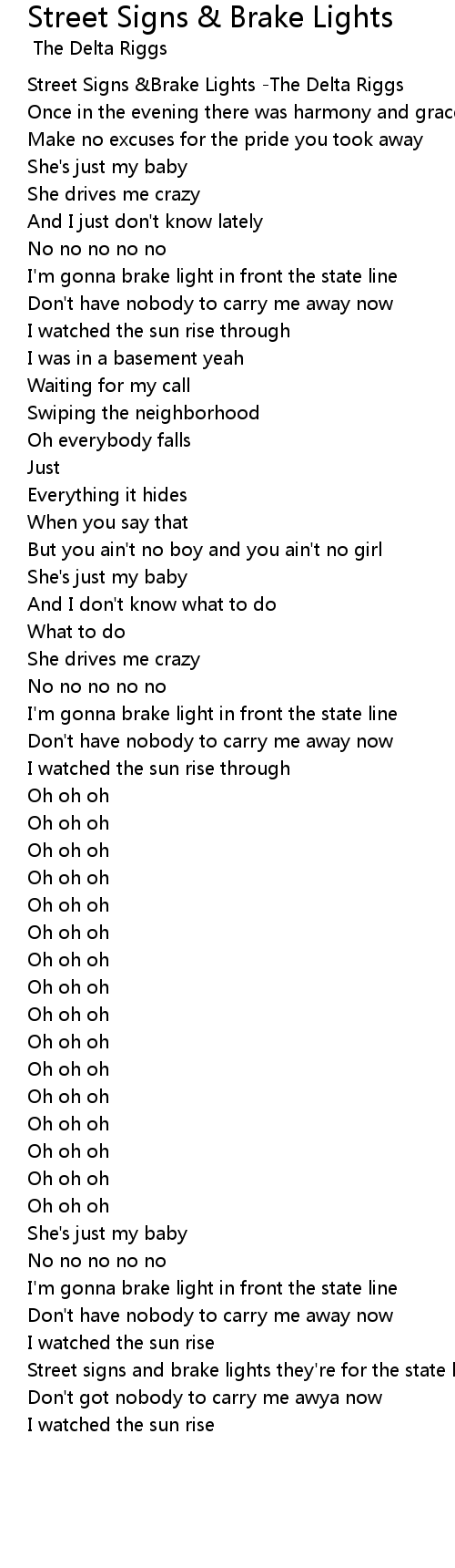 Street Signs & Brake Lights Lyrics