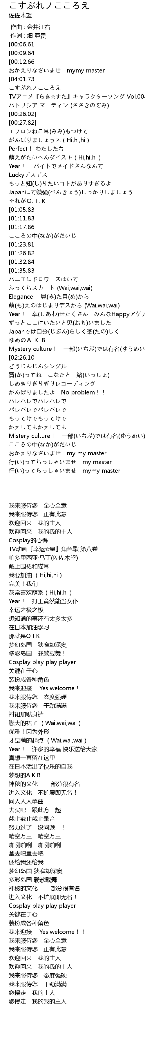 | [03:56.08][00:12.66] | おかえりなさいませ my master |