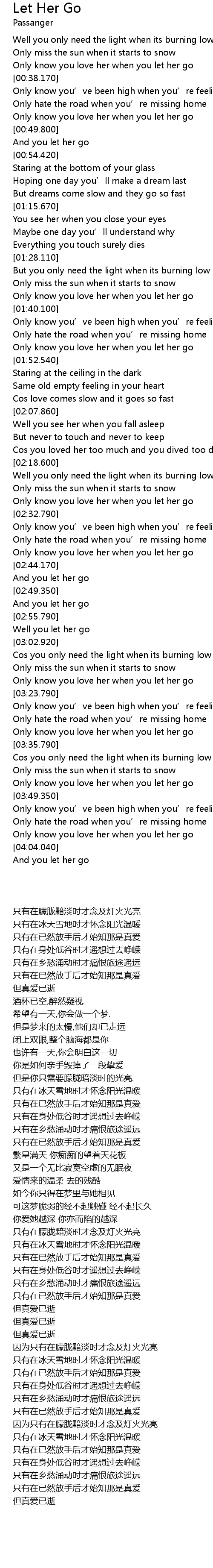 | [03:25.790] | Only know you’ve been high when you’re feeling low |