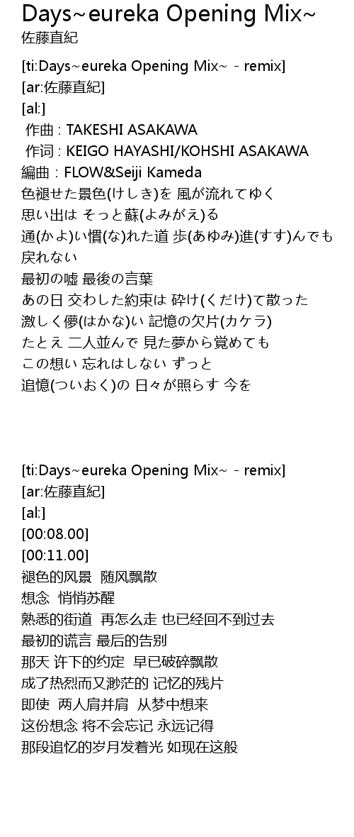 | [ti:Days~eureka Opening Mix~ - remix] | |