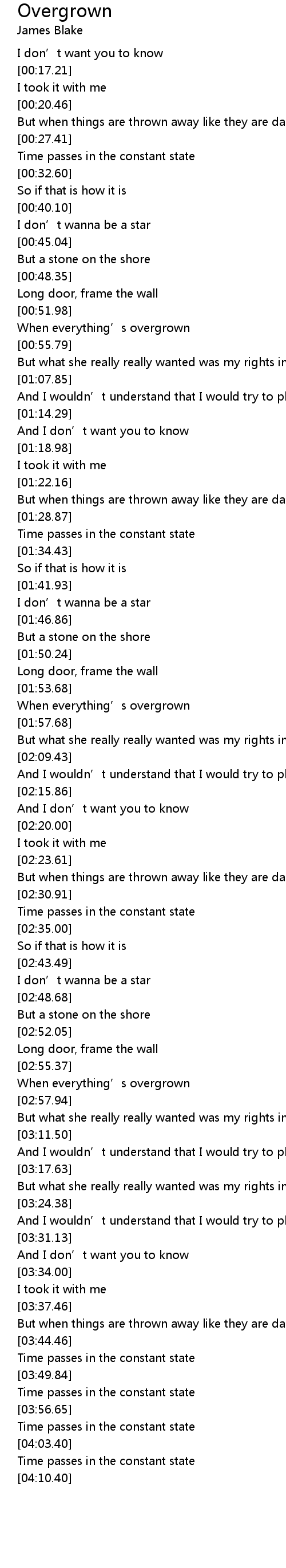 | [00:53.16] | When everything' s overgrown |