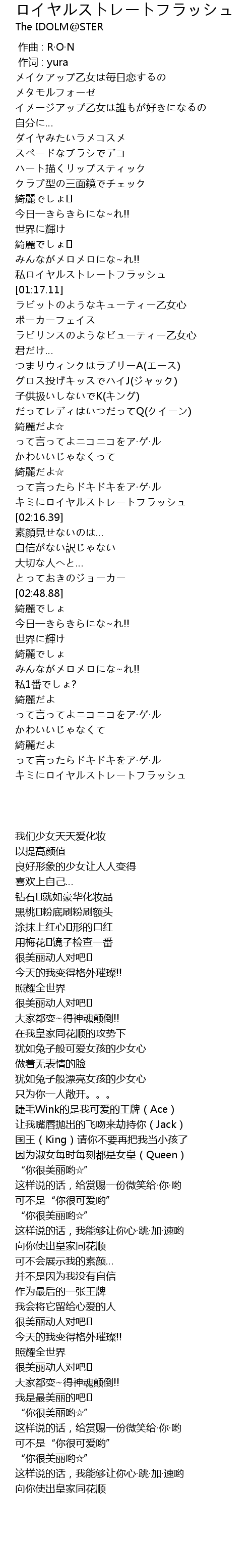 | [02:10.22] | キミにロイヤルストレートフラッシュ |