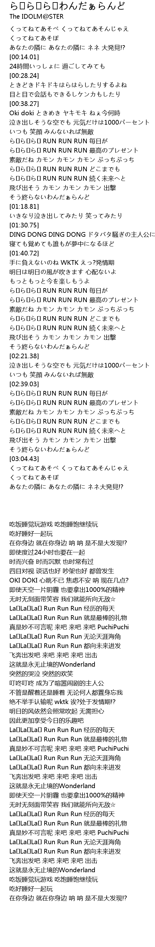 | [02:43.19] | ら♪ら♪ら♪ RUN RUN RUN 最高のプレゼント |